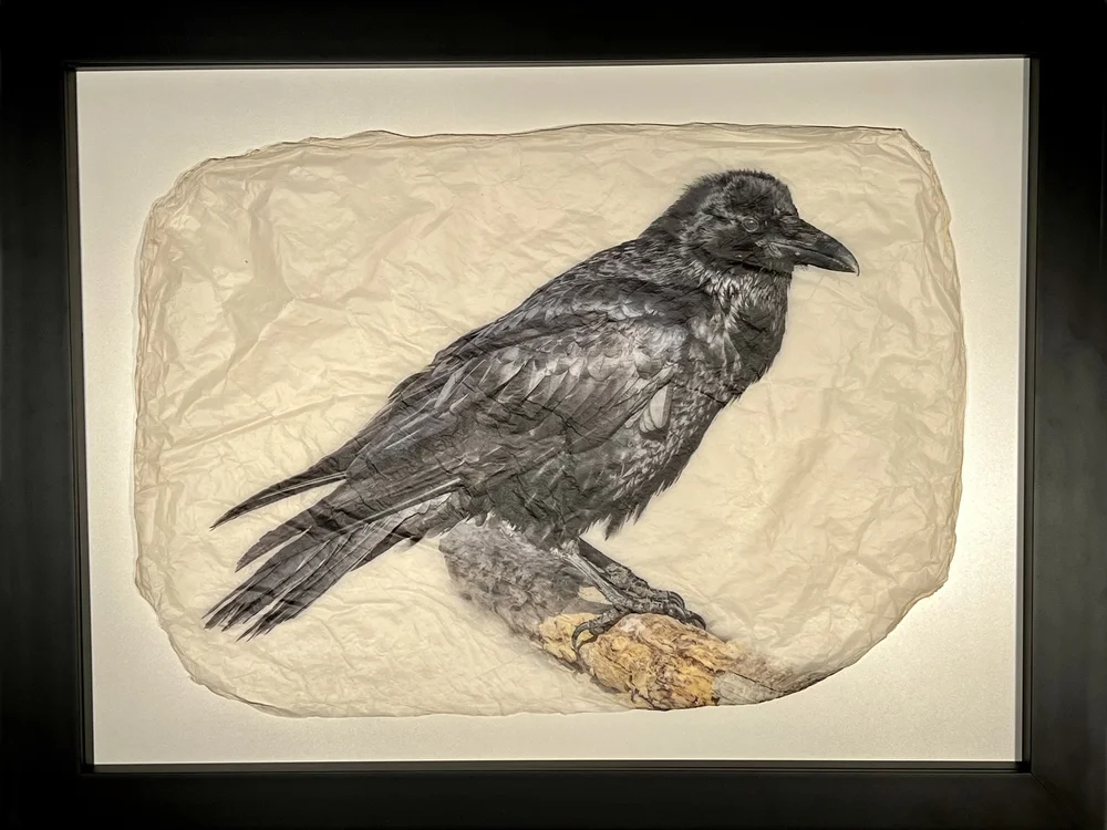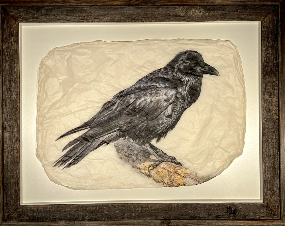 This clever little scavenger is available in 3 standard sizes,16”x20”, 20”x 26” and 30”x 40”. It also comes in your choice of a contemporary black frame or a more rustic barnwood frame.